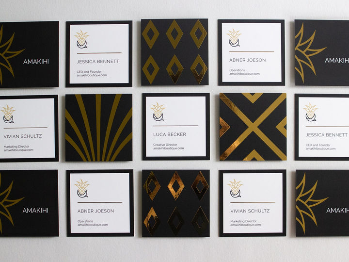 Gold foil on printed collateral helps elevate the brand, and reenforces the Art Deco inspired patterns.